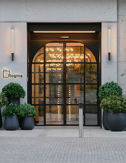 Ubicado en la Calle de Alcalá, a tan solo unos metros de la Puerta del Sol, la Gran Vía o Cibeles, y frente a la Plaza de Canalejas y el nuevo centro comercial de Gran Lujo La Galería Canalejas, El Hotel Regina, un hotel boutique que habita un histórico edificio modernista, ha sabido evolucionar y adaptarse a las necesidades actuales, respetando la riqueza de su origen.